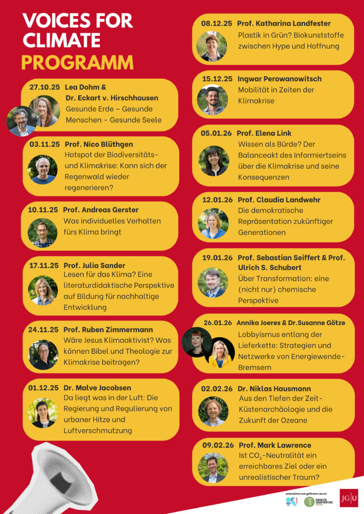 • JGU-Vorlesungsreihe „VOICES FOR CLIMATE“: Ab 27.10.2025